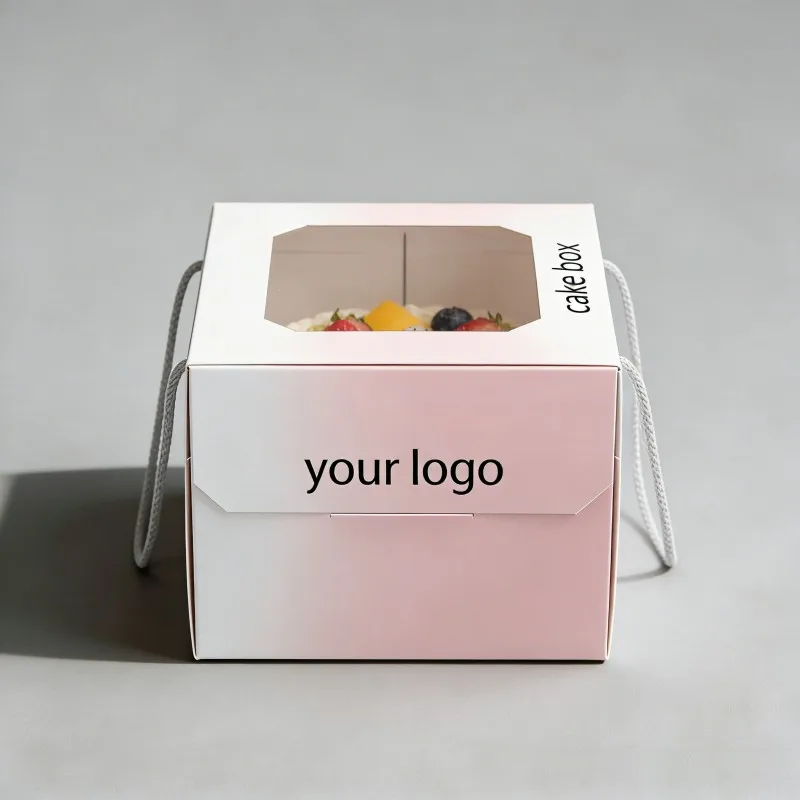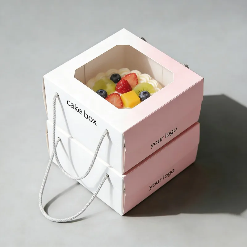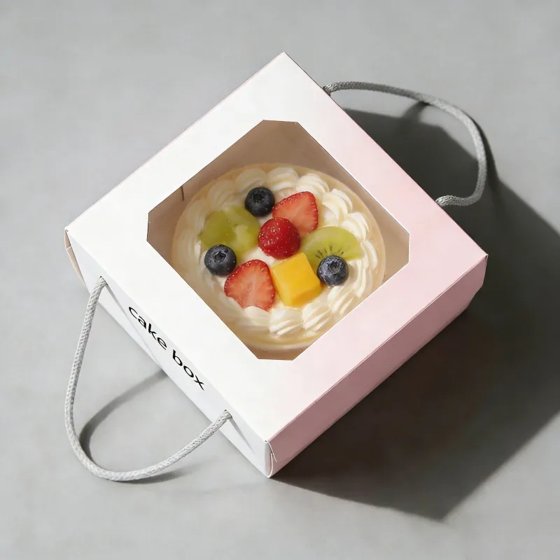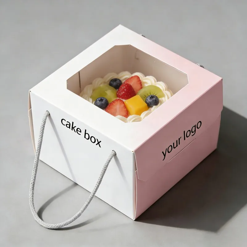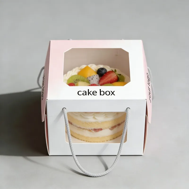 Aangepaste Groot Voukoekboks Met Venster, Hoë Gehalte Wit Karton Bakkerybokse, Voedselgraadpapier Koekboks Met Handvatsel