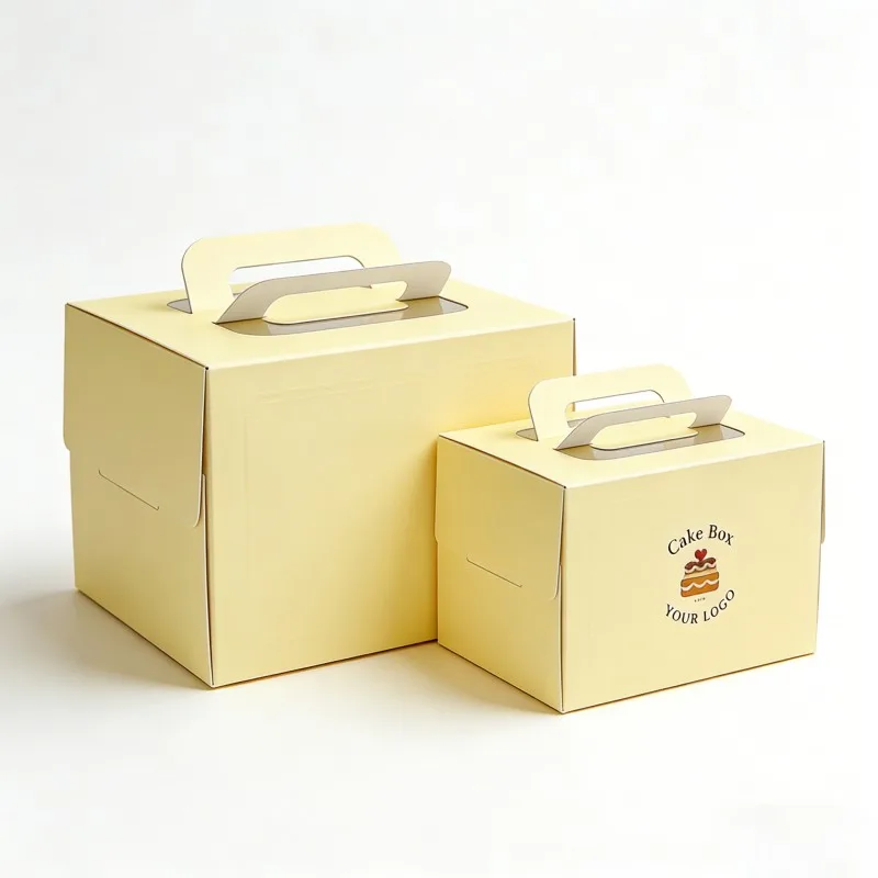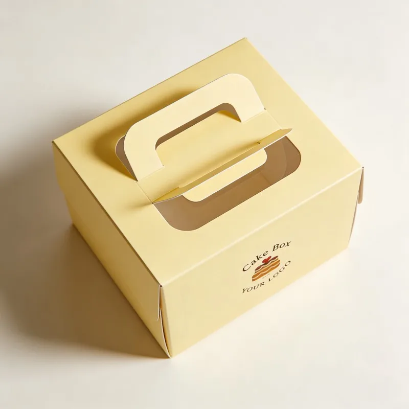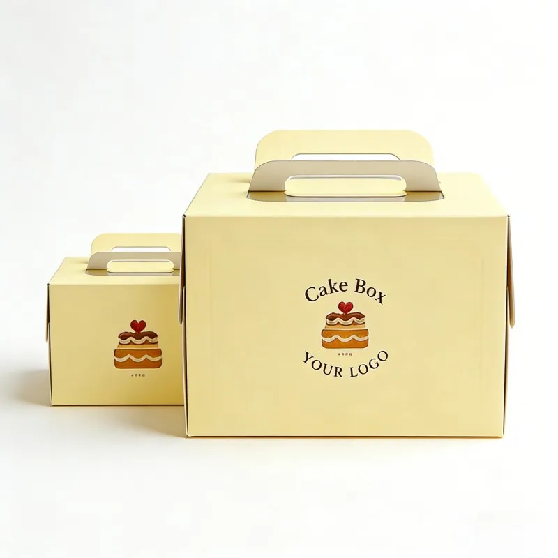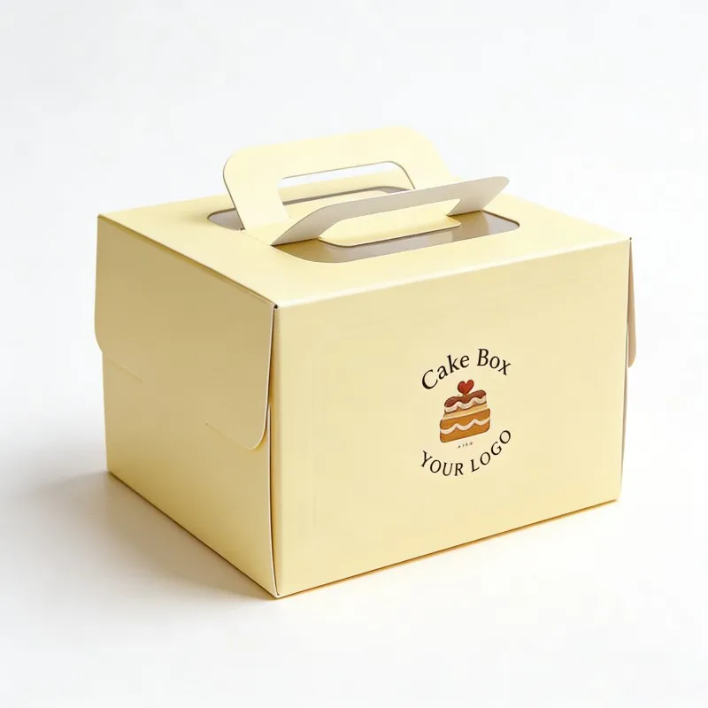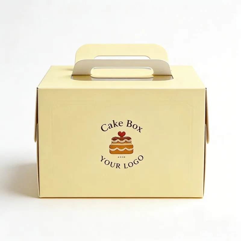 Aangepaste gedrukte ontwerp voedselverpakkingstoedieningsboks vir koek, kartonverpakkingstoedieningsboks met handvatsel, papierkoekbokse vir voedsel