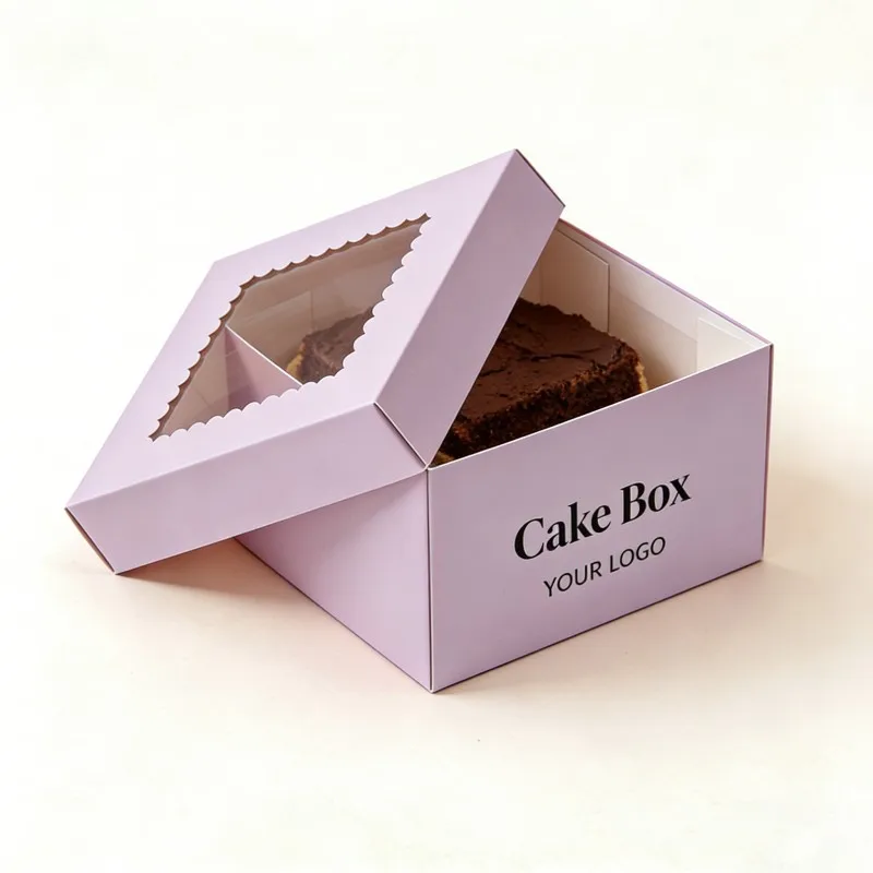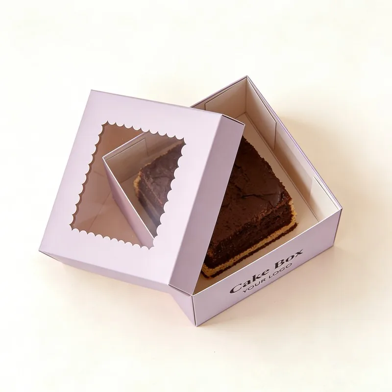 Voedselgraadkoekpapierboks Met Huisdiervenster, Sojaink, Aangepaste Ontwerp, Goedkoop Papierkoekboks, Reghoekig, Hoë Gehalte Kartonkoekboks
