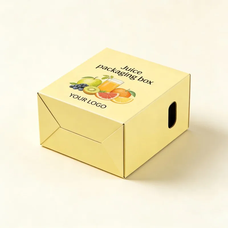 Xüsusi loqotipli Banan Alma Şirəsi Qablaşdırma Qutusu Təkrar Emal Edilə Bilən Meyvə Şirəsi Kağız Qutusu Lüks Davamlı Büzməli Saxlama Göndərmə Qutusu