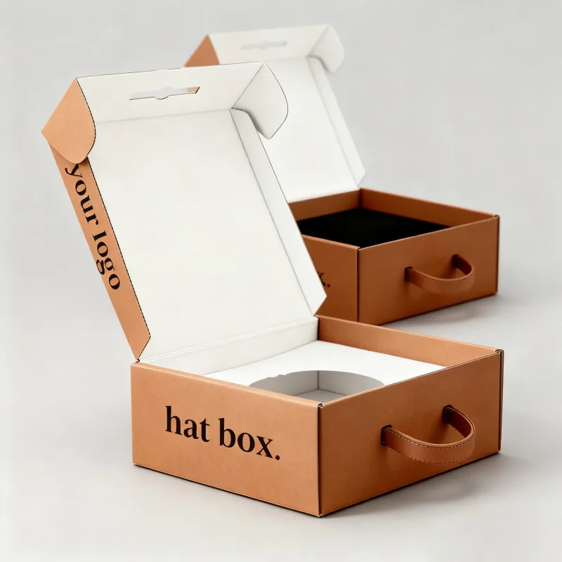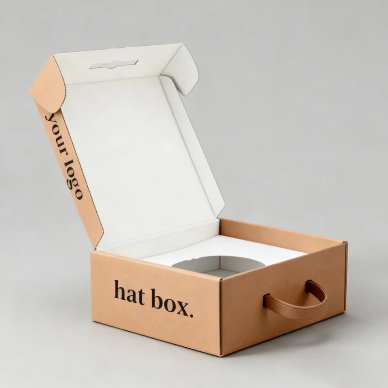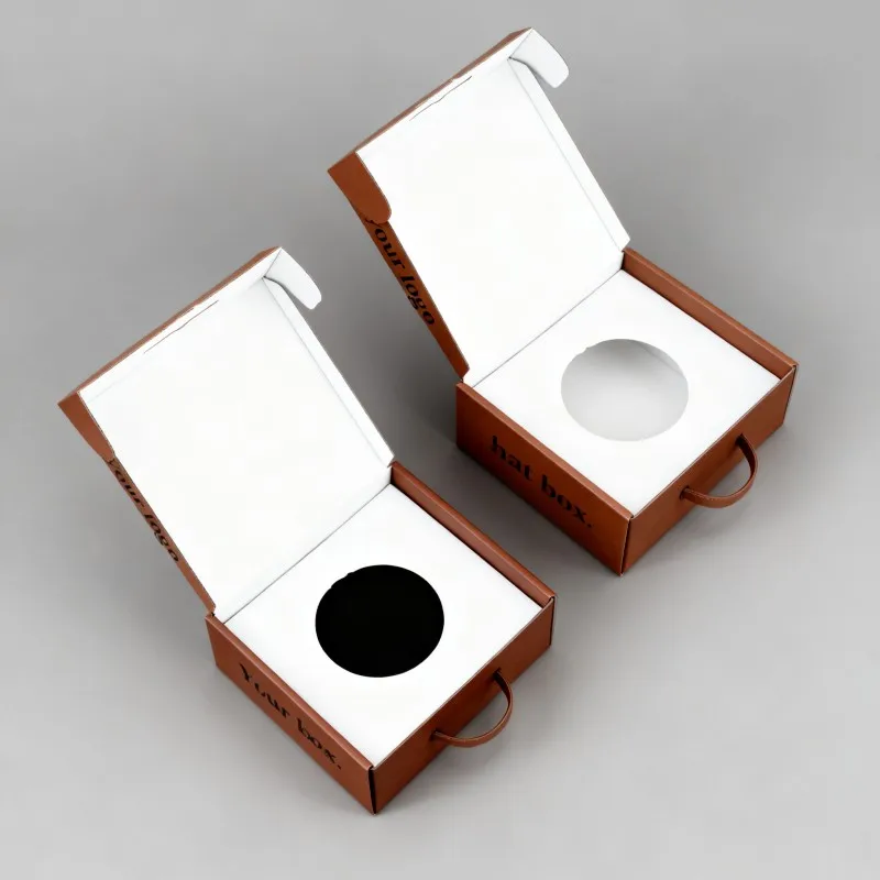 Populyar kraft kağızı və karton qablaşdırma qutusu, düz papaq və beysbol papağı üçün daşınma qutusu, ekoloji dostu papaq qutusu, hədiyyələr üçün qablaşdırma