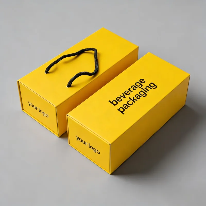 Biodegradierbares, nach Maß gefertigtes, robustes Verpackungskarton mit Fenster für Getränke - Rotwein, Branntwein, Whiskey, Champagner - Zwei-Flaschen-Karton mit Griff