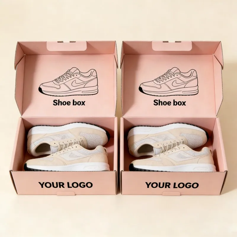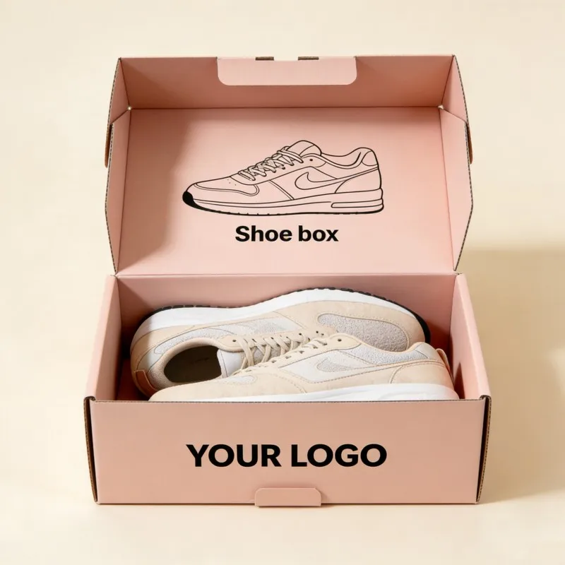 Faltbare Schuhbox aus Sojatinte und Wellpappe – individuelle dreilagige Wellpappe mit Klappdeckel, wiederverwertbare Verpackung für Schuhe und Bekleidung