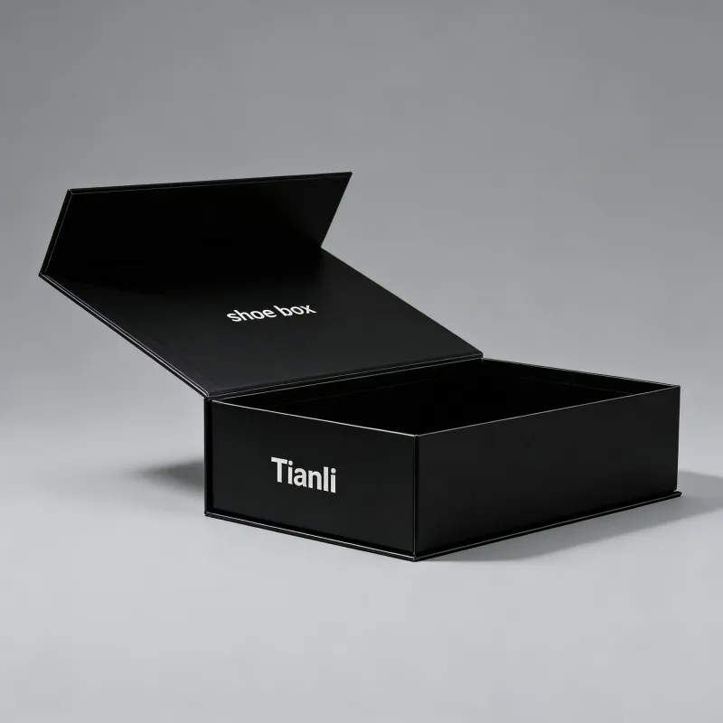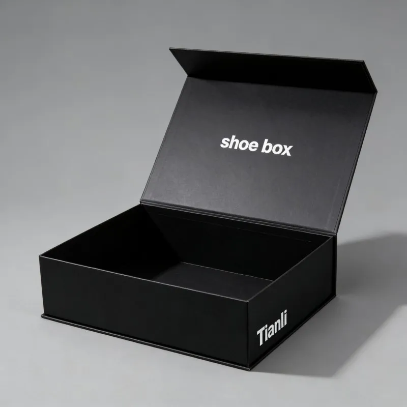 Πολυτελές διπλωτό χάρτινο κουτί ενδυμάτων με μαγνητική κλεισίματος για δώρα, μαύρο μαγνητικό κουτί δώρου για παπούτσια, χονδρική πώληση με προσαρμοστικό λογότυπο με ψηφιακή εκτύπωση