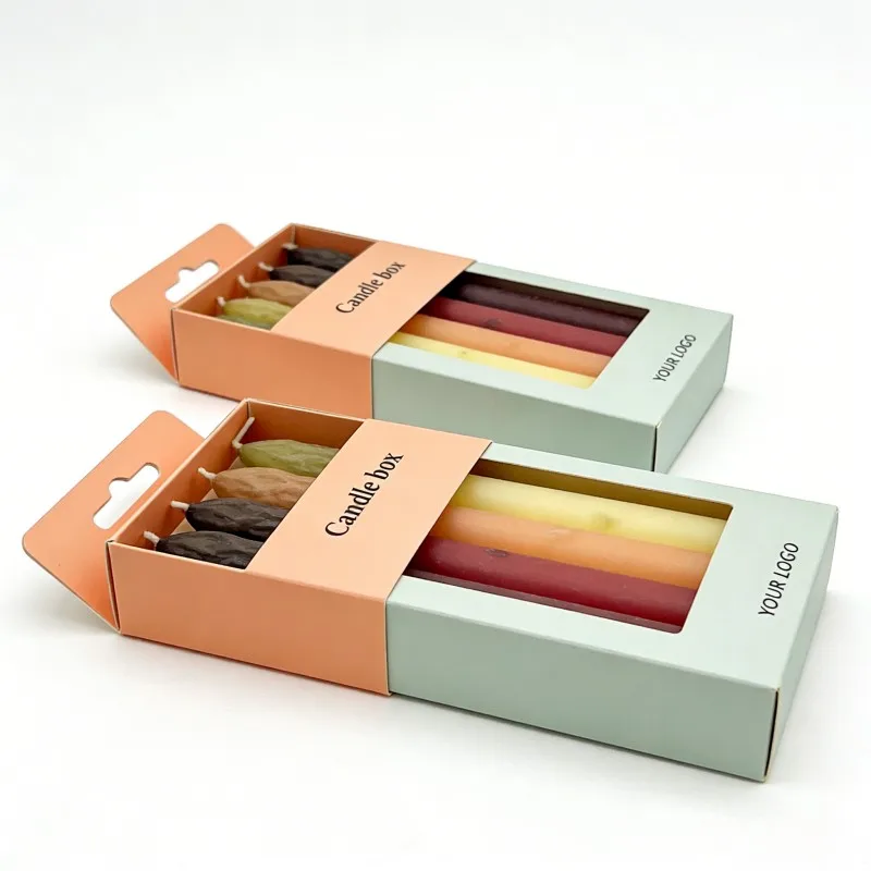 caja de papel para regalo de velas finas (5 uds. o 10 uds.), caja plegable con funda transparente con ventana, embalaje personalizado de lujo para velas cónicas