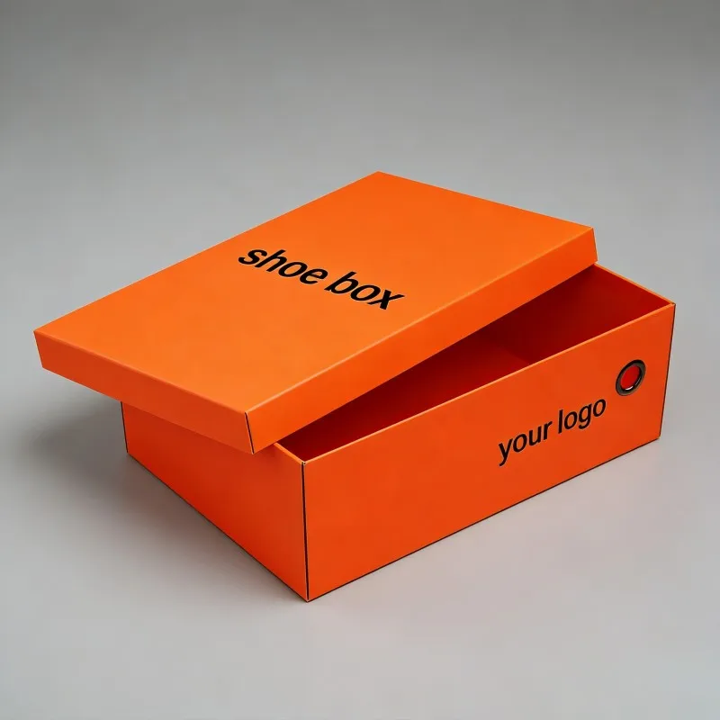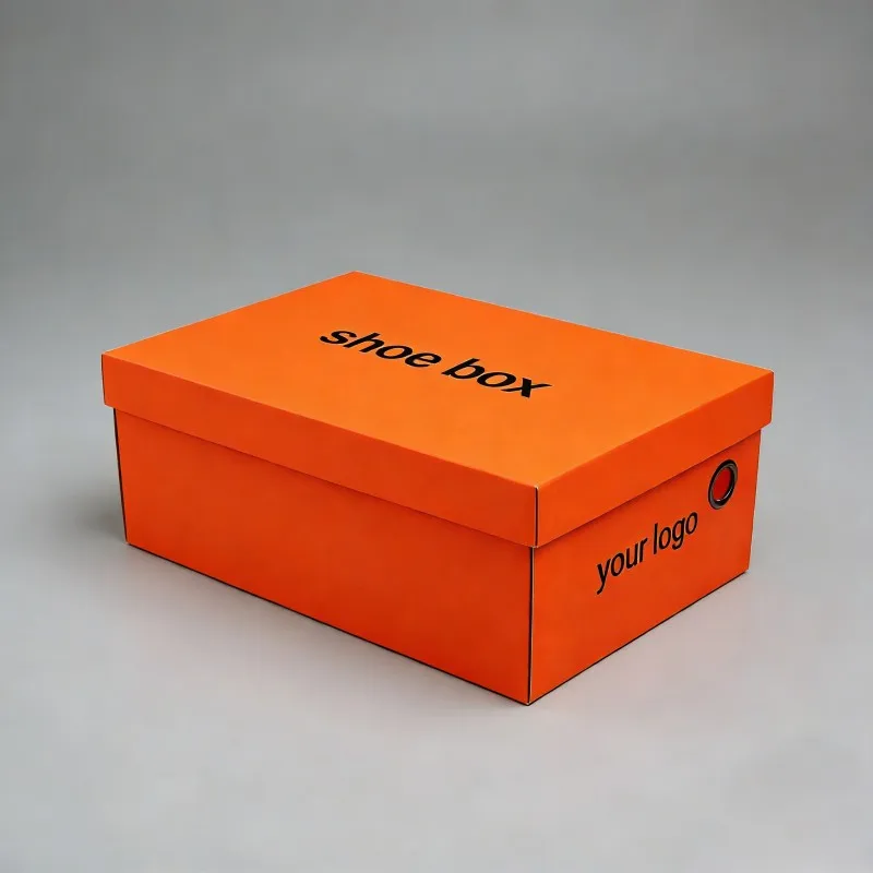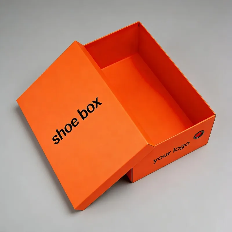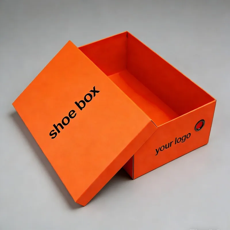 Caja de embalaje biodegradable para tacones altos naranja, caja de papel rígida de alta gama para calzado deportivo, diseño personalizado para embalaje de calzado