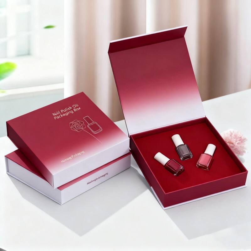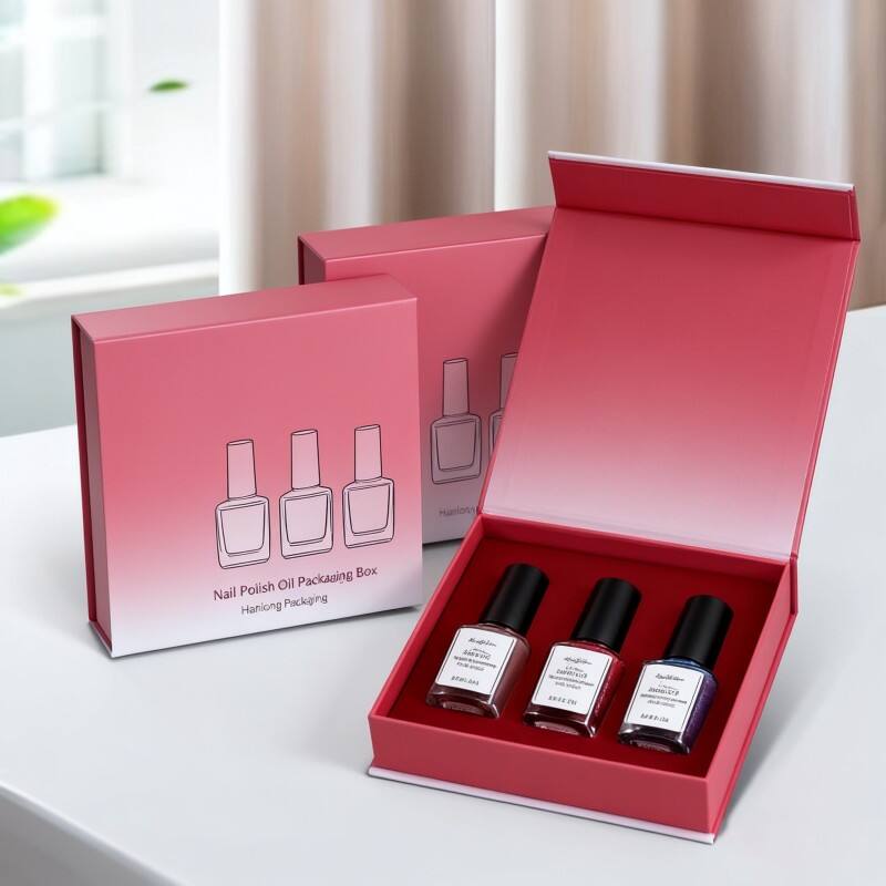Factory Custom logo recyclable pink packaging box luxury cosmetics cardboard gift box nail polish oil bottle magnetic paper box
