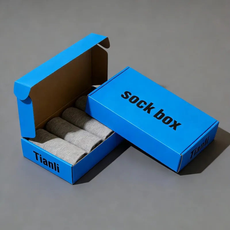 Digitaalipainatus, mukautettu logolla varustettu kraftpaperilaatikko sukkupakkausta varten, ympäristöystävällinen mukautettu vaatetuspakkaus, kartonkilaatikko