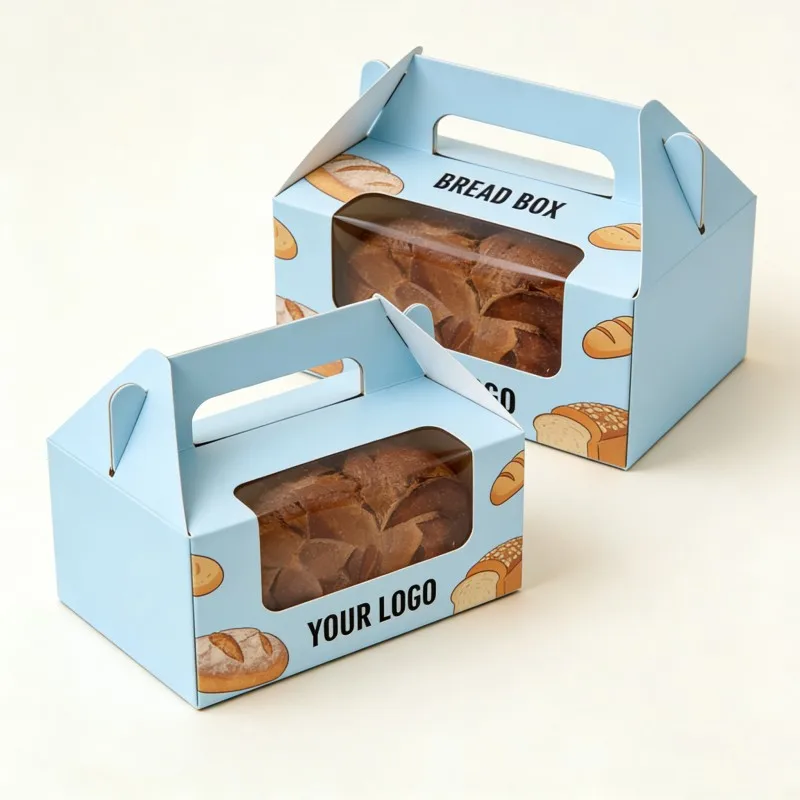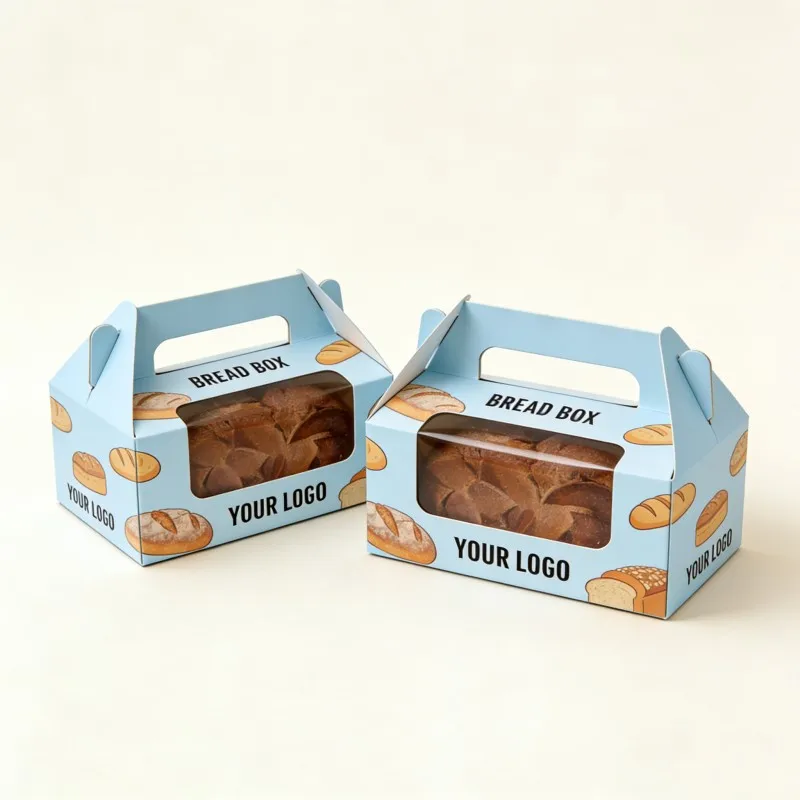 Boîtes en papier sur mesure pour cookies de restauration rapide, adaptées aux sandwichs à emporter, au petit-déjeuner et à l’emballage de pains, boîte de boulangerie avec fenêtre