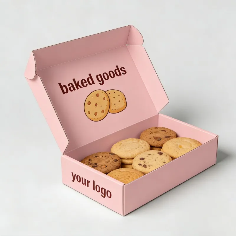 rózsaszín egyedi pékségi sütemények csomagoló doboz, szójatintás, matt felület, keksz- és browniedoboz, magas minőségű, zsírtálló sütemény- és donutdobozok