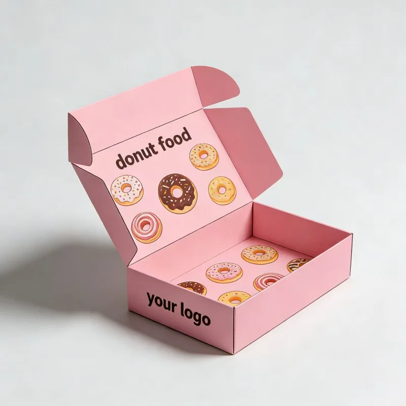 Újrahasznosítható, személyre szabott, hajtott fánk-, kenyér- és tortadoboz élelmiszer-célú papírdobozként; hullámpapír szállítódoboz süteményekhez; olcsó, barna süteményes papírdoboz cukrászda számára