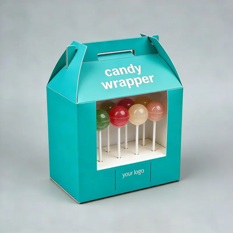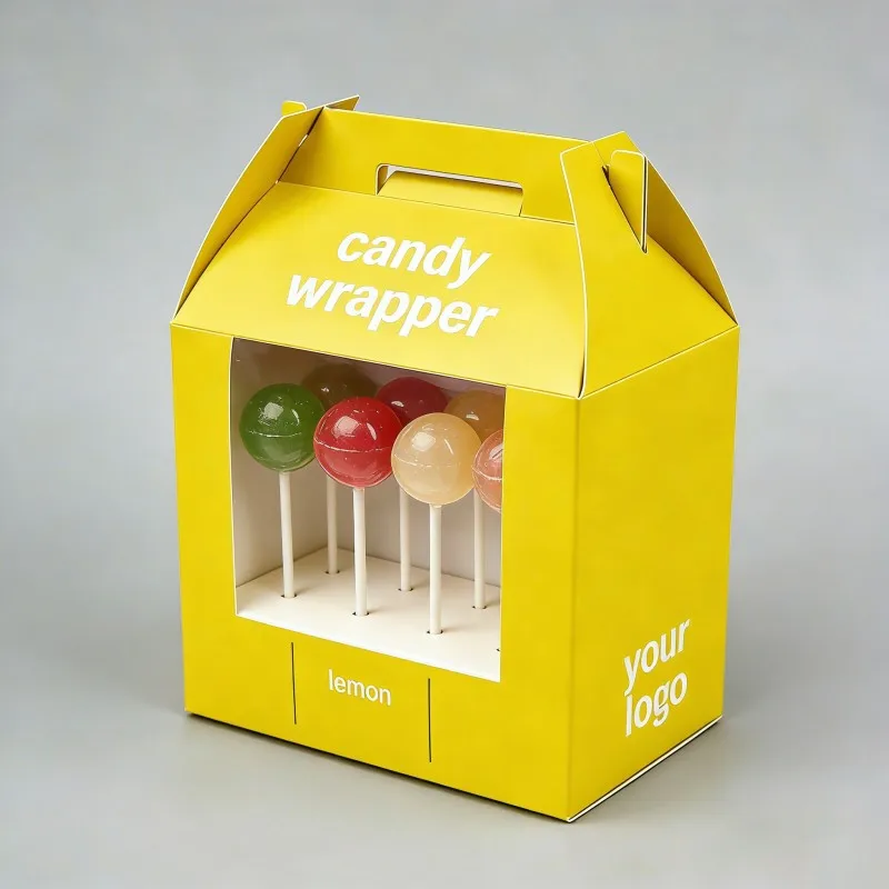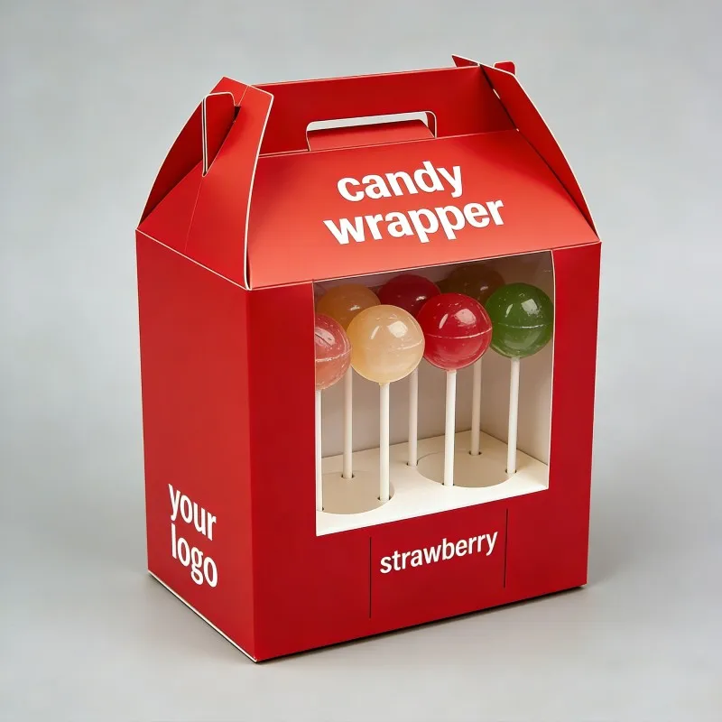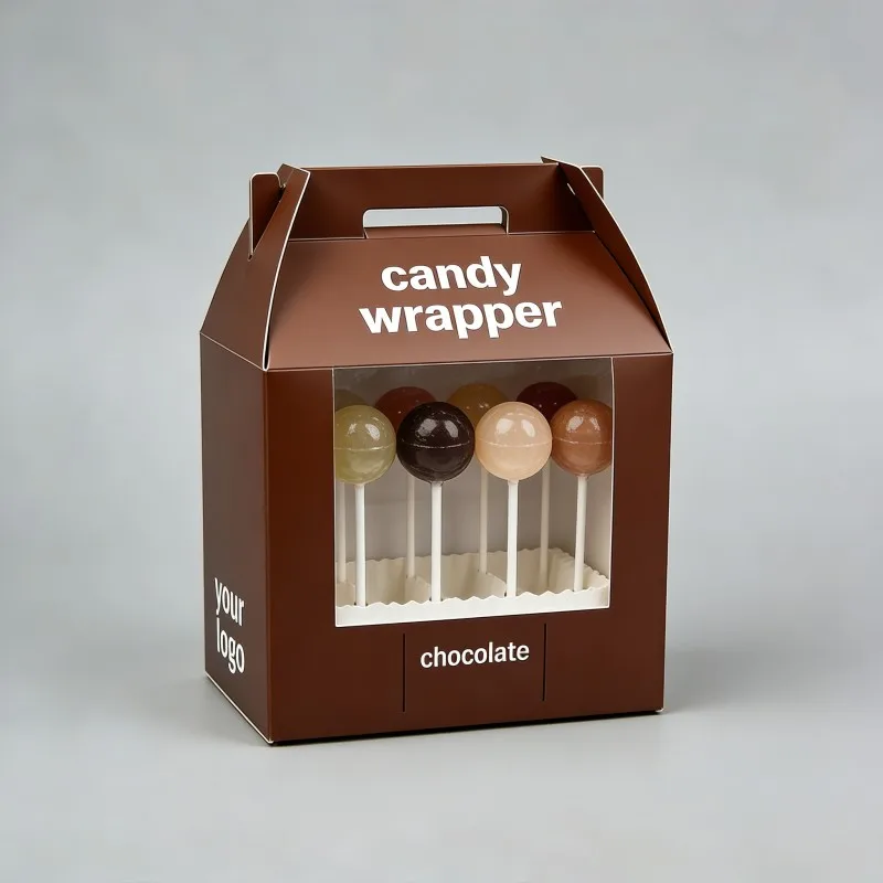Kotak Lolipop Stroberi Buatan Tangan Populer dengan Logo Kustom—Kotak Display Cokelat dan Permen dengan Jendela Transparan