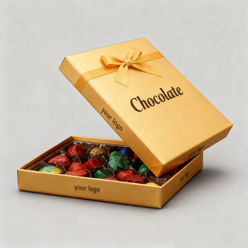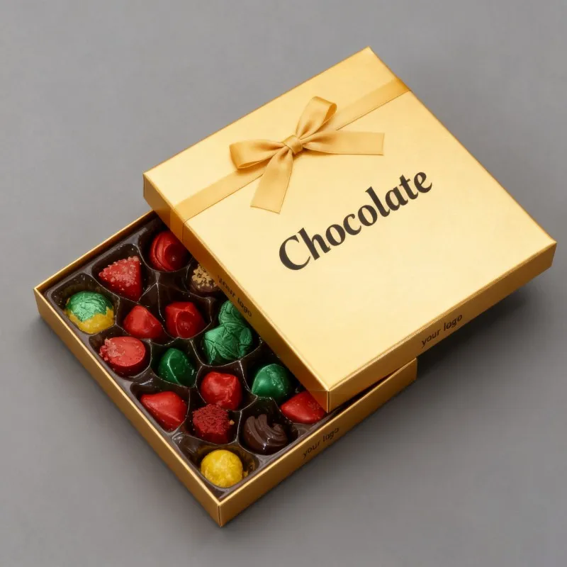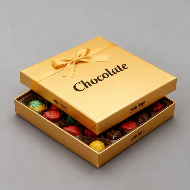 Kotak Hadiah Mewah dari Karton Emas yang Daur Ulang, dengan Desain Atas dan Bawah yang Dapat Disesuaikan, untuk Cokelat, Biskuit, Donat, Makanan Penutup, dan Kue