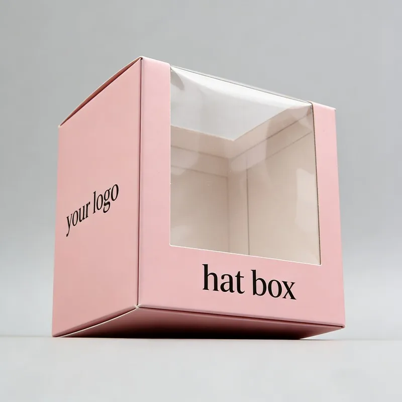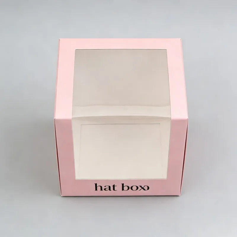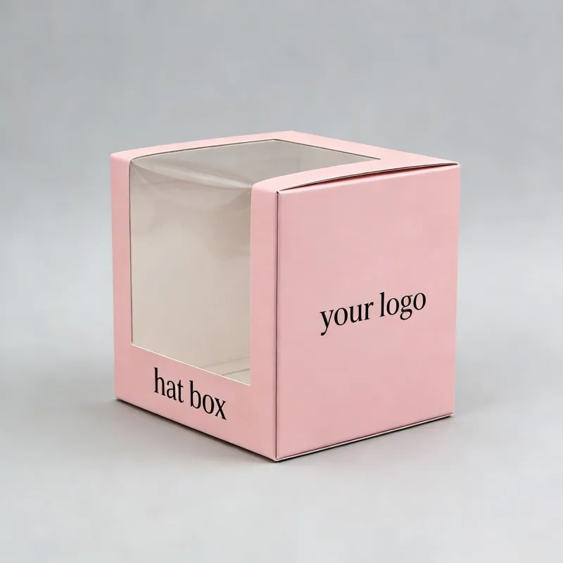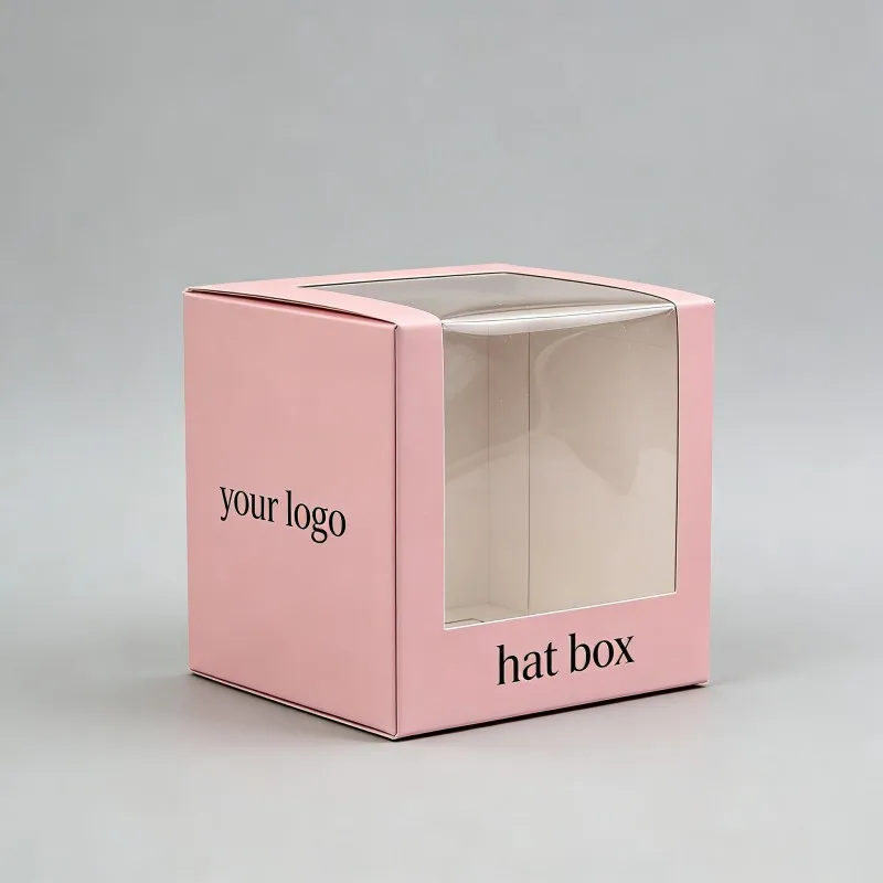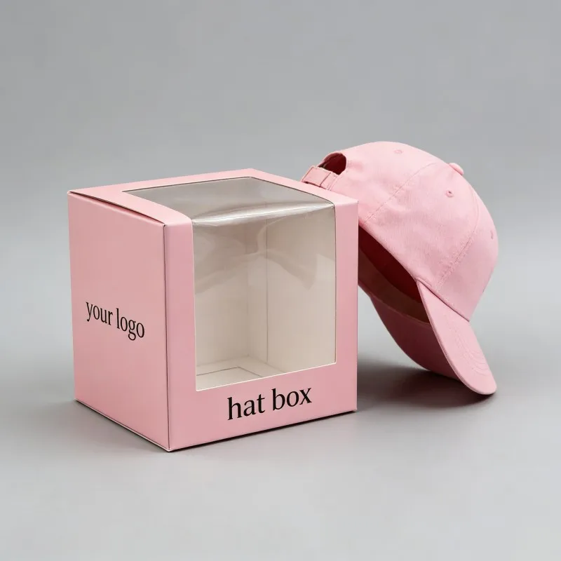 Scatole all'ingrosso per cappelli da baseball con finestra trasparente, personalizzabili e stampate, imballi postali riciclabili e personalizzati per regali, con finestra trasparente