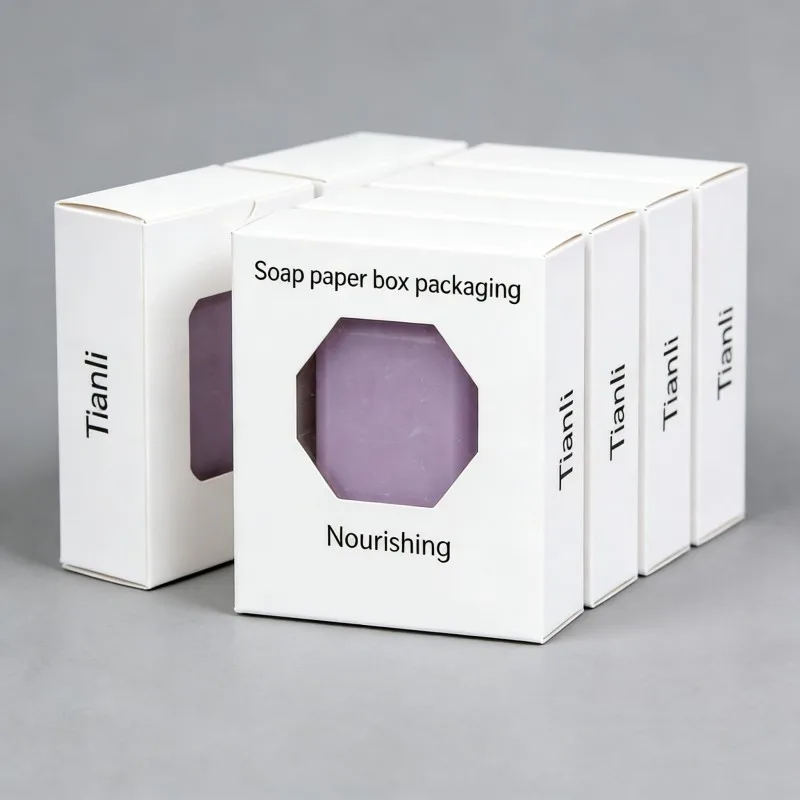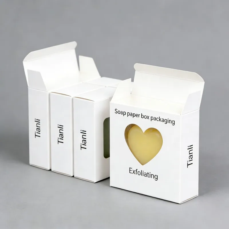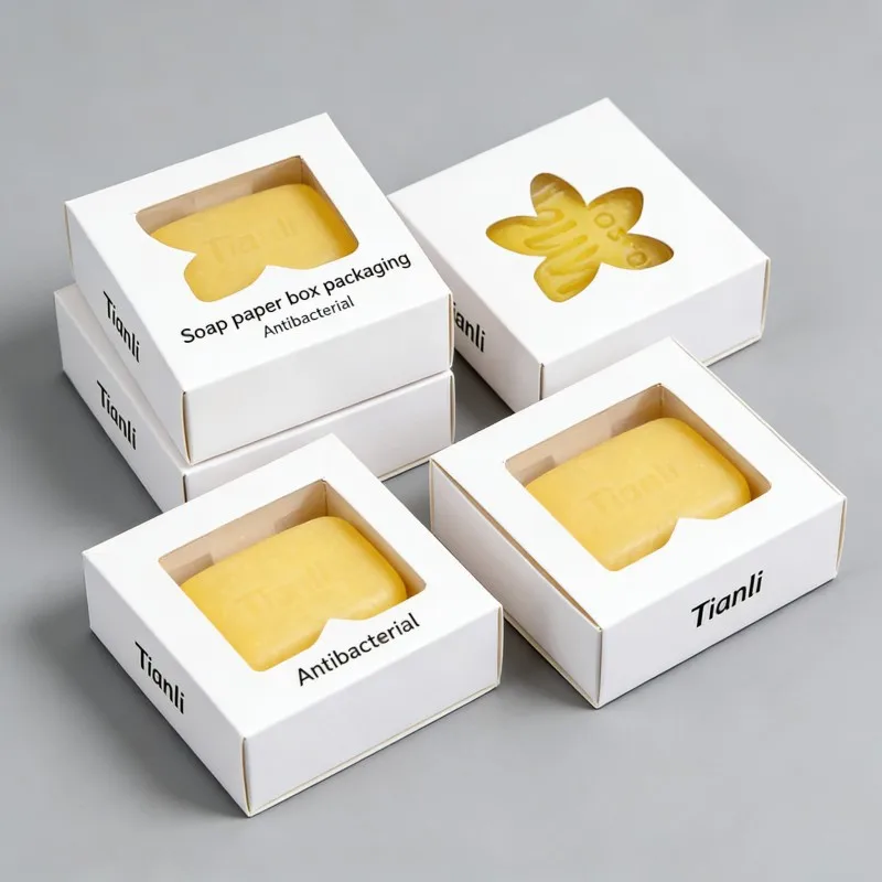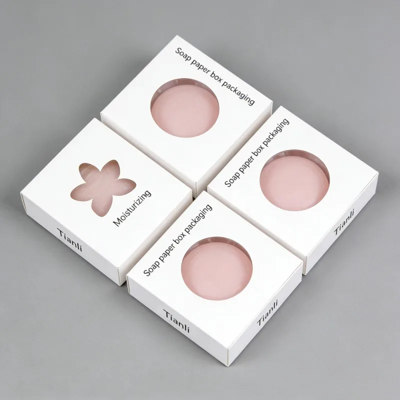 デジタル印刷によるカスタムロゴ入り・低最小発注数(MOQ)・エコフレンドリー・生分解性紙ボード製石鹸バー用パッケージ(窓付き出荷用)