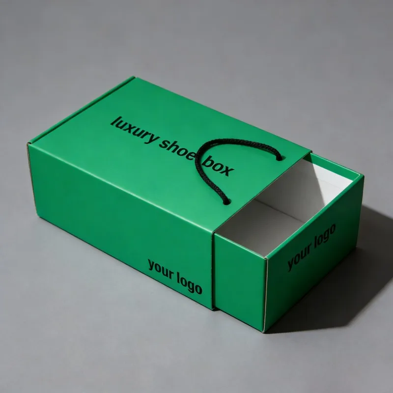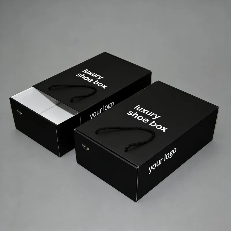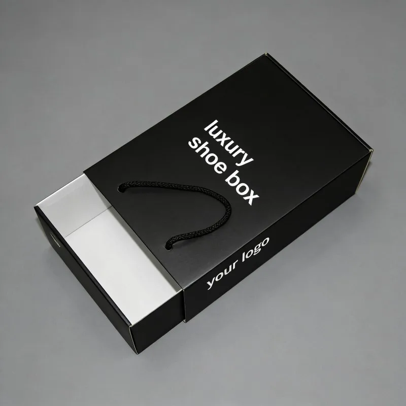 リサイクル可能なスポーツシューズ用紙製ボックス(ロープ付き)、高級感のあるフルカラー印刷引き出し式ボックス(子供用シューズボックス向け)、大豆インク使用シューズボックス