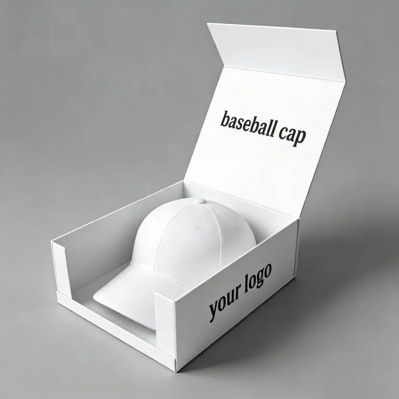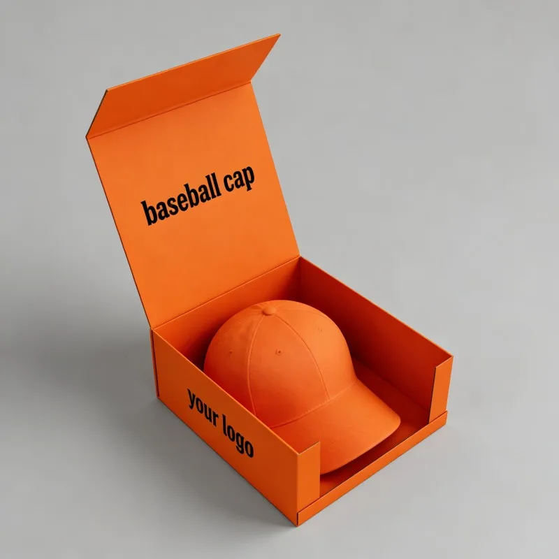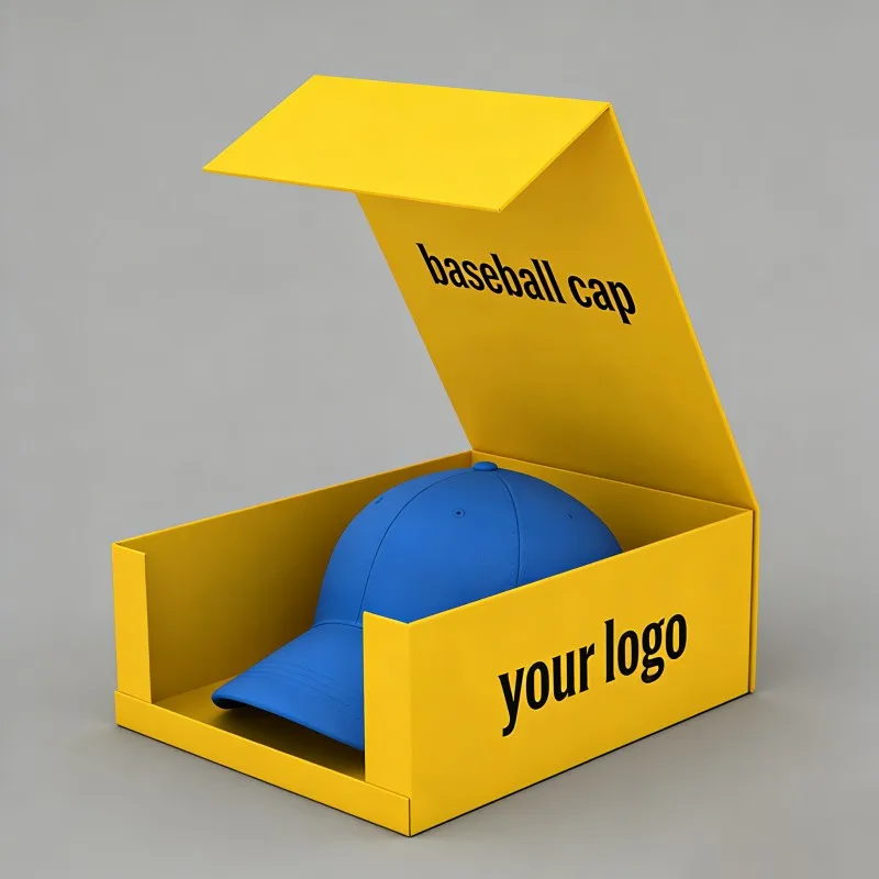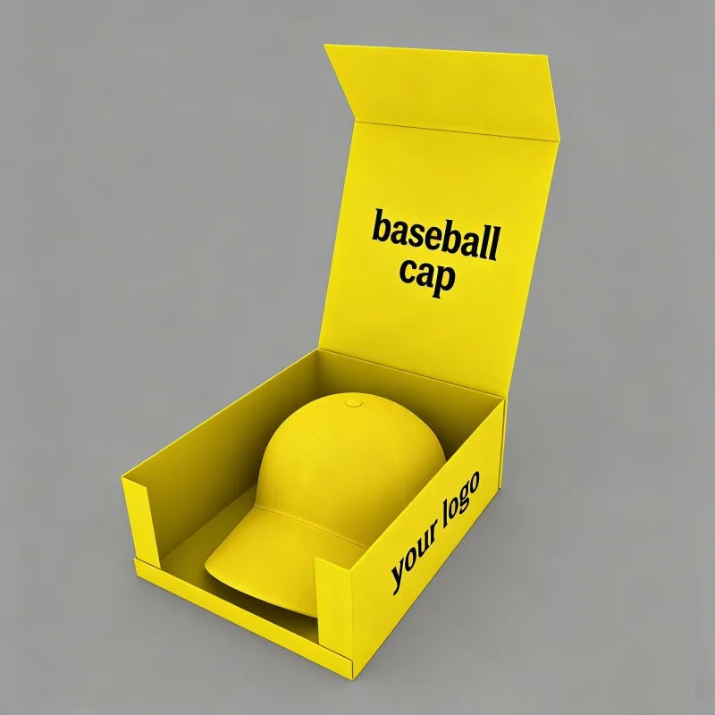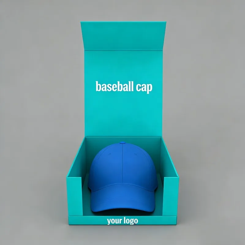 Aukštos kokybės individualizuotos kepurės pakuotės dovanojamųjų dėžučių rinkinys, lankstos, naudingos kainos santykio, viršutinėmis dangtelio dalimis atveriamos kepurės dėžutės, standžios individualizuotos beisbolo kepurės dėžutės