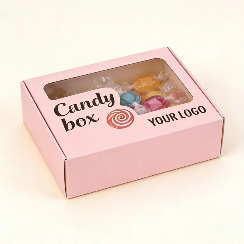 Kotak Pembungkus Biskut Coklat, Makanan Ringan Manis, Donat, dan Pencuci Mulut Berkualitas Tinggi yang Boleh Terurai Secara Semula Jadi; Kotak Kertas Murah dengan Tingkap Lutsinar