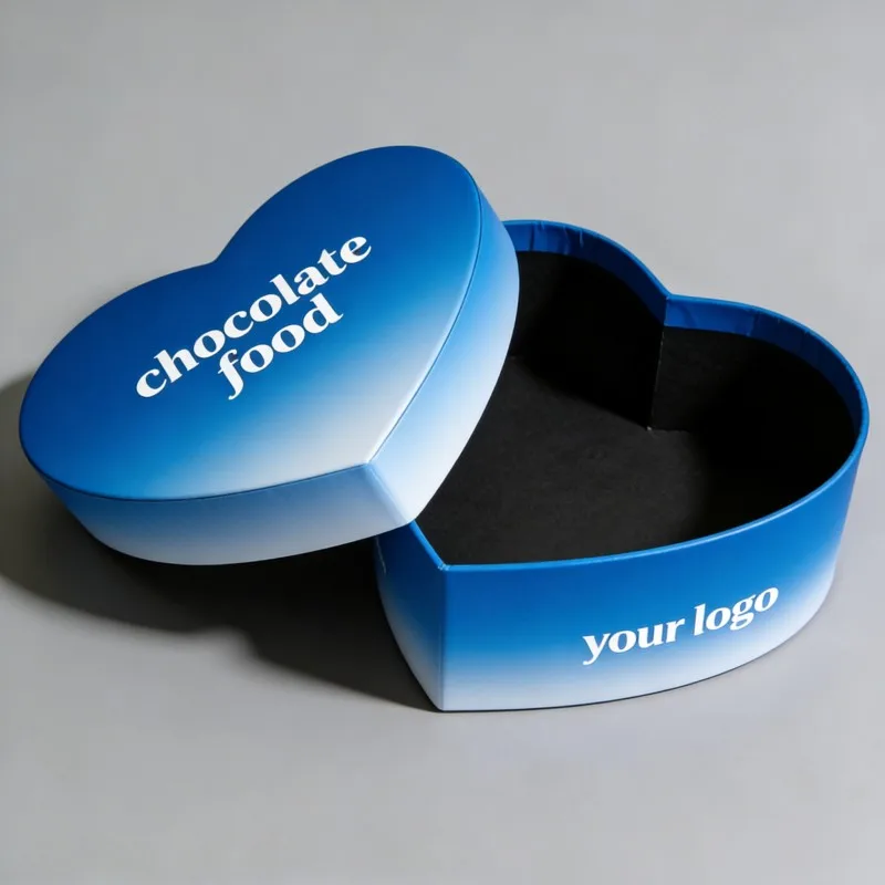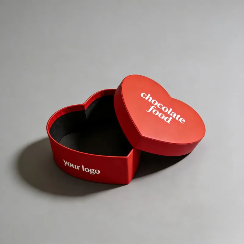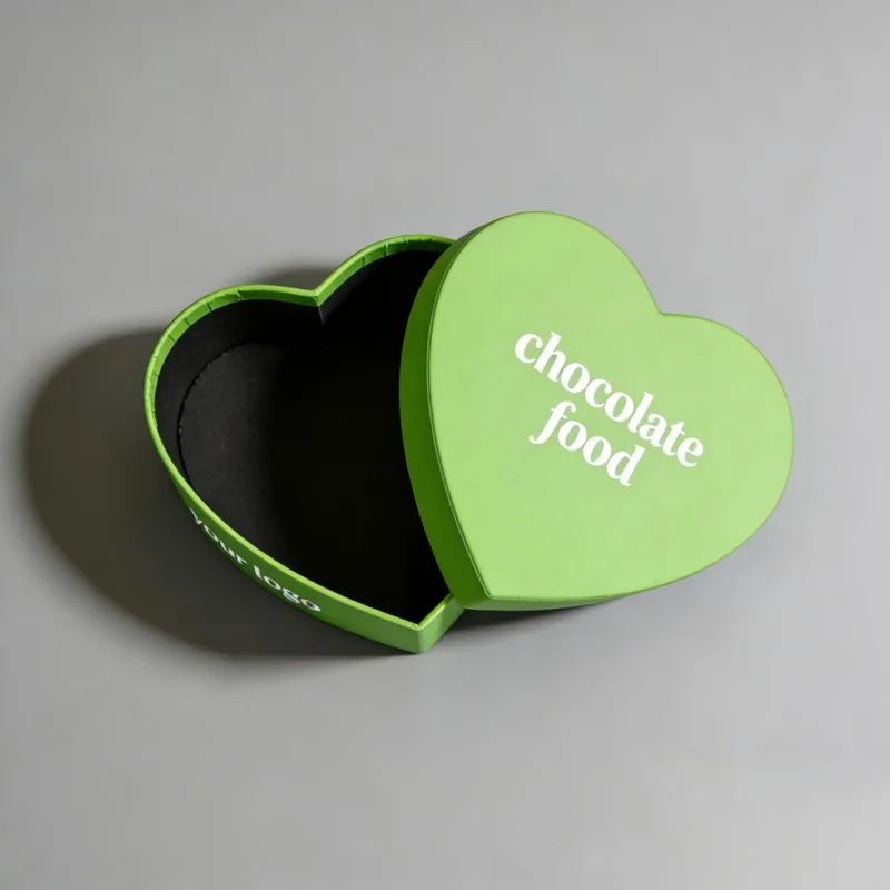 Boks ta’ Kartun iswed b’Finitura Matta f’forma ta’ Qalb għall-Jum tal-Ġid, Boks għall-Regali b’Koating UV luxużu, b’Logo fuq il-bażi u l-għożża, għall-Ċikolata, b’Certifikazzjoni ISO9001