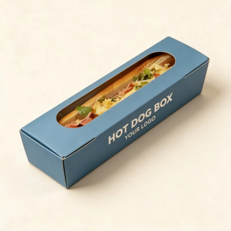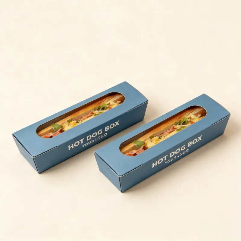 Voedingsgeschikte recyclebare goedkope kraftpapierdoos met venster, soja-inkt, hotdog-, baguette- en sandwichverpakking voor bakkerijbrood, verzenddozen