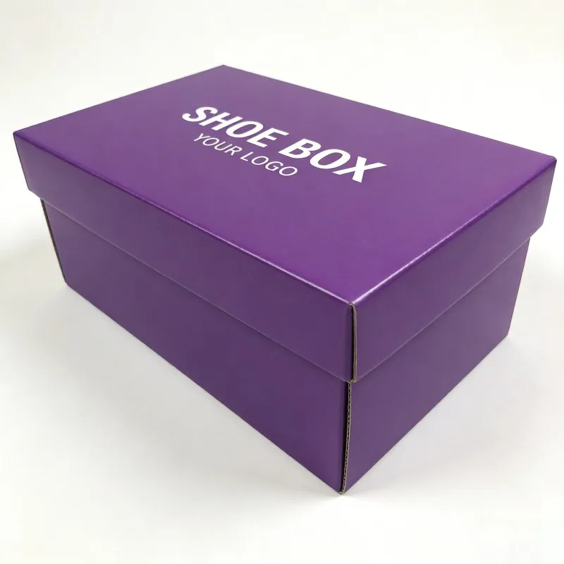 Groothandel aangepaste vouwbare kartonnen schoendoos, recyclebaar, matte afwerking, E-flute, vouwbare papieren verzenddoos als cadeaudoos voor kleding en schoenen