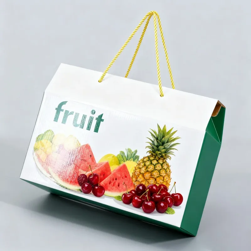 Fabrikk tilpasset frukt grønnsaker med håndtak boks soya blekk pappboks for helligdags gave lav minste bestillingsmengde midthøst månekaipapirboks