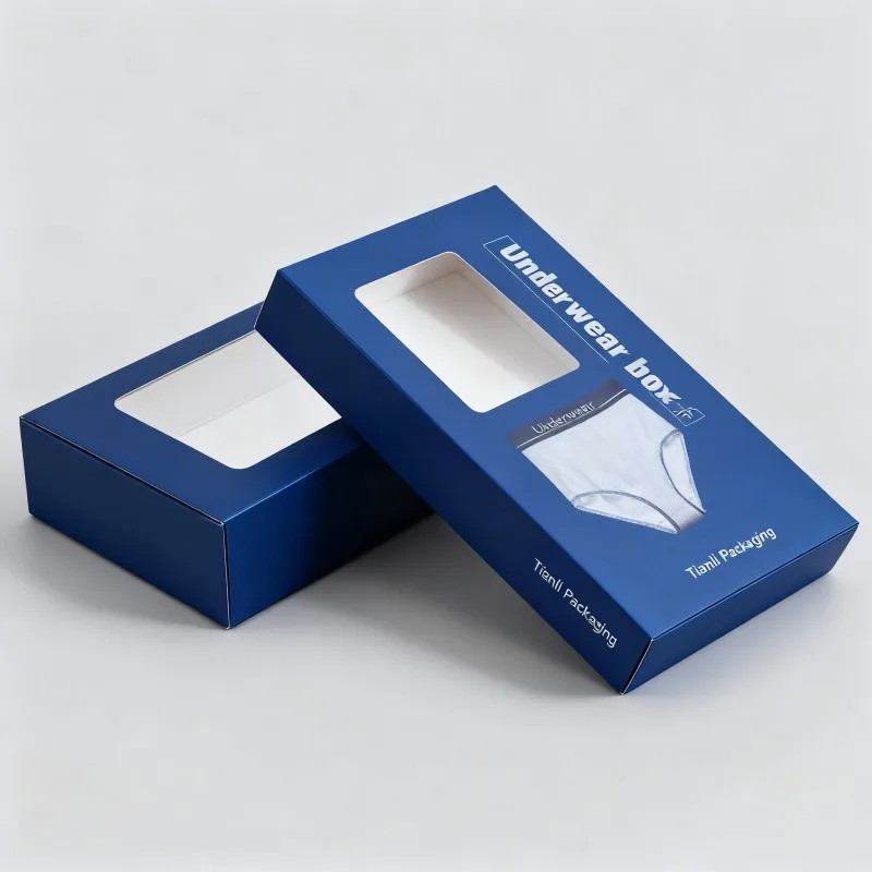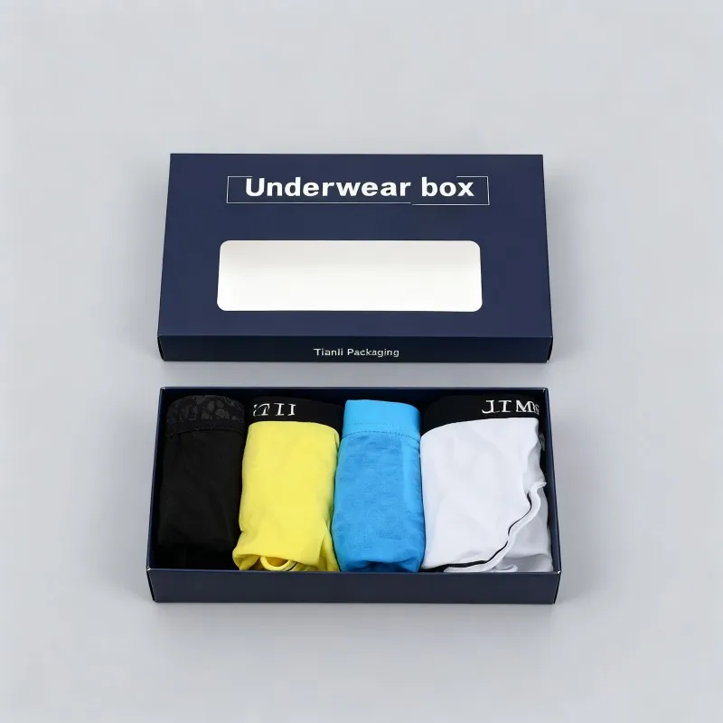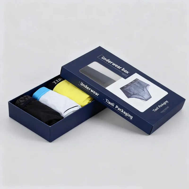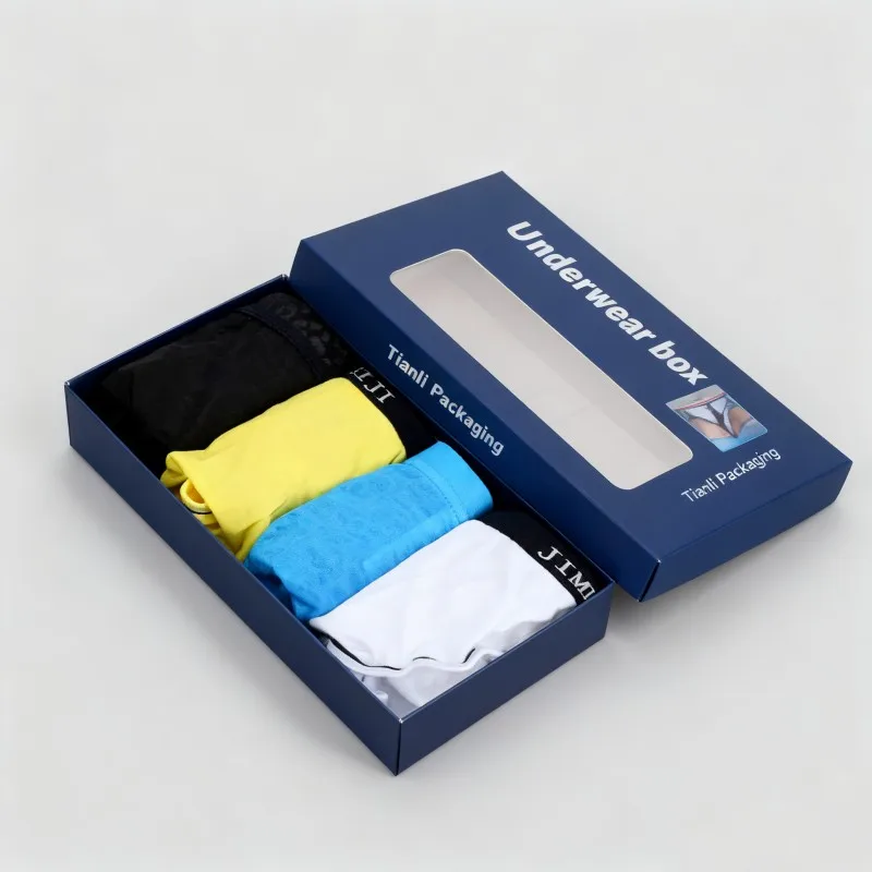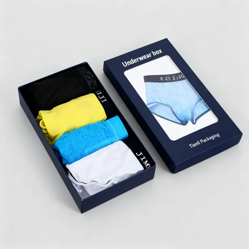 Fabrikkspriser, høykvalitets, populært salg, lokk- og bunn-papirboks til undertøy, sokker, menn, holdbar, resirkulerbar emballasjeboks med vindu