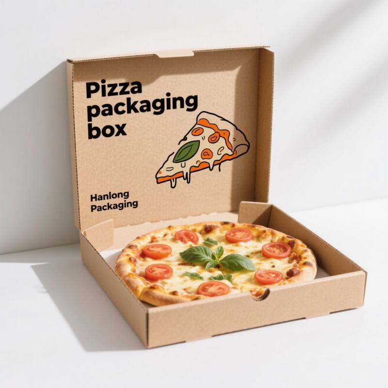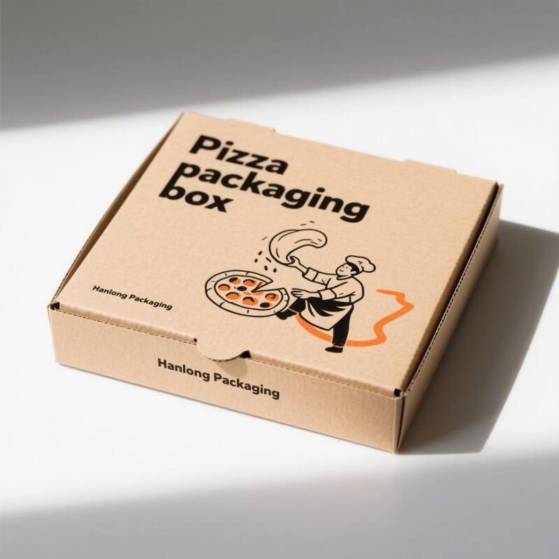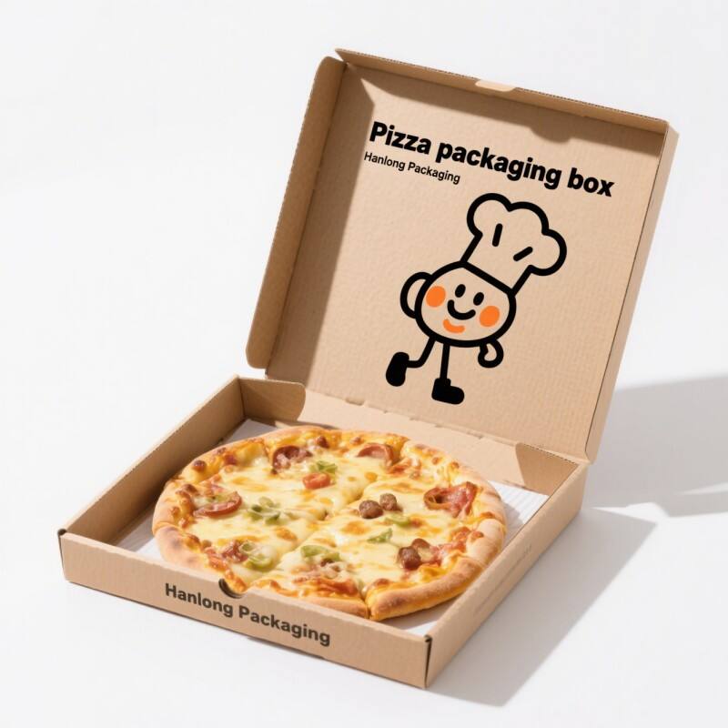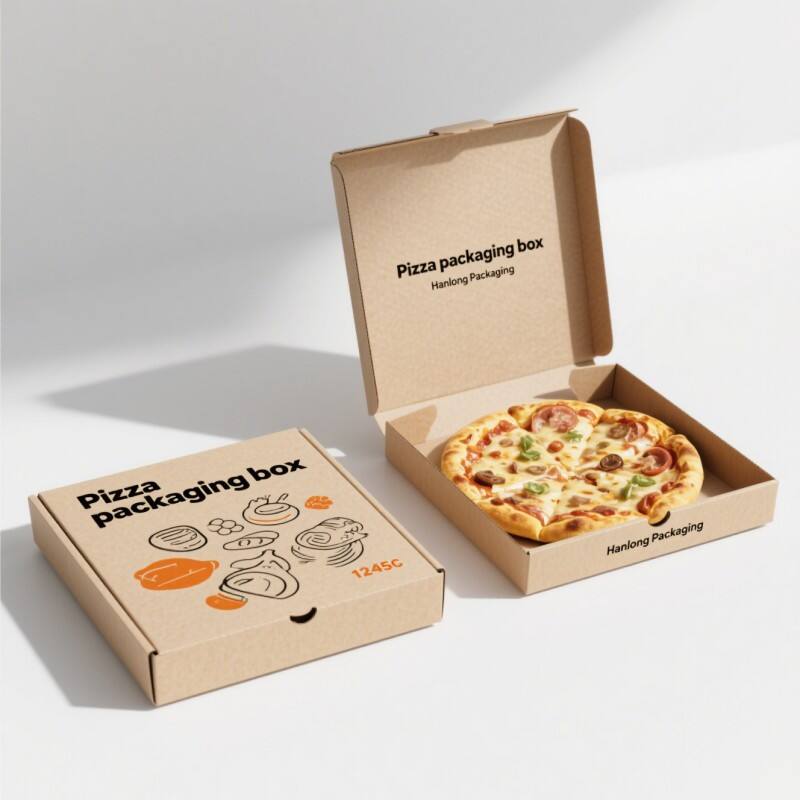 Engros trykk logo emballasjeboks miljøvennlig brun kraftpapir papp pizza boks fabrikk engangs matpapirboks