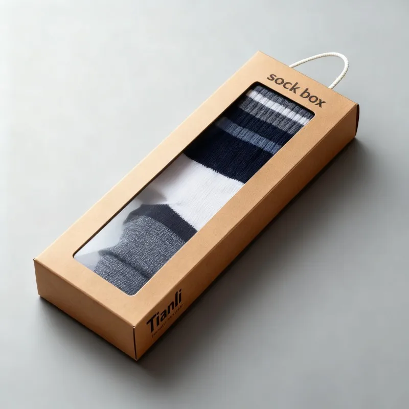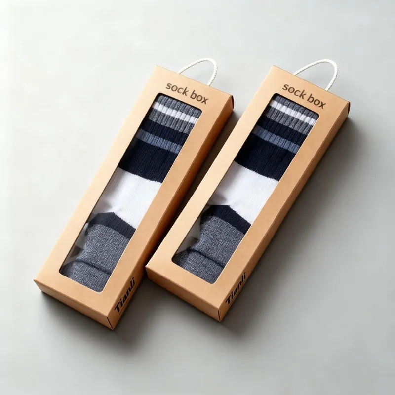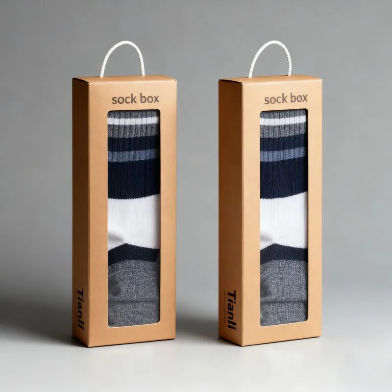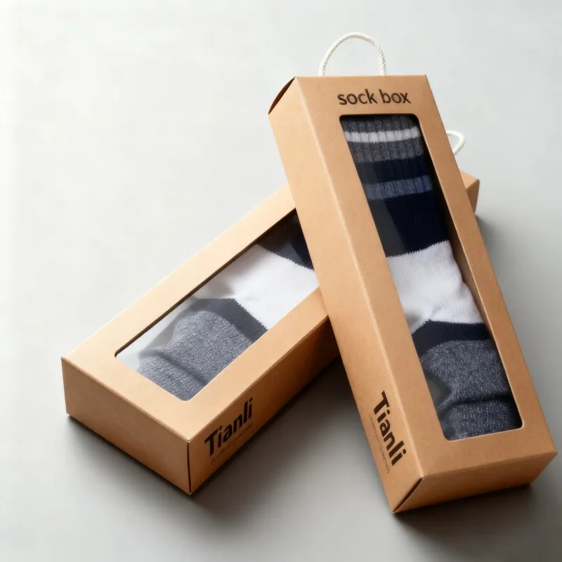 Caixa para Meias com Janela e Impressão Digital, Caixa Dobrável Personalizável para Roupas Íntimas, Caixa Biodegradável para Meias e Acessórios Íntimos