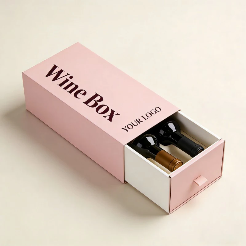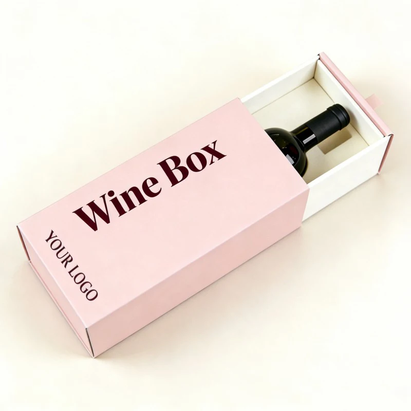Cutie cu sertar, cu logo imprimat personalizat și acoperire UV, realizată din materiale reciclate, ambalaj premium din carton pentru sticle de vin și whisky, cutie de hârtie cadou