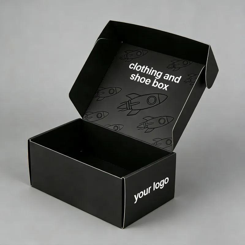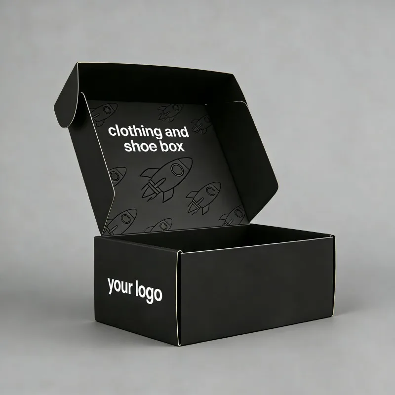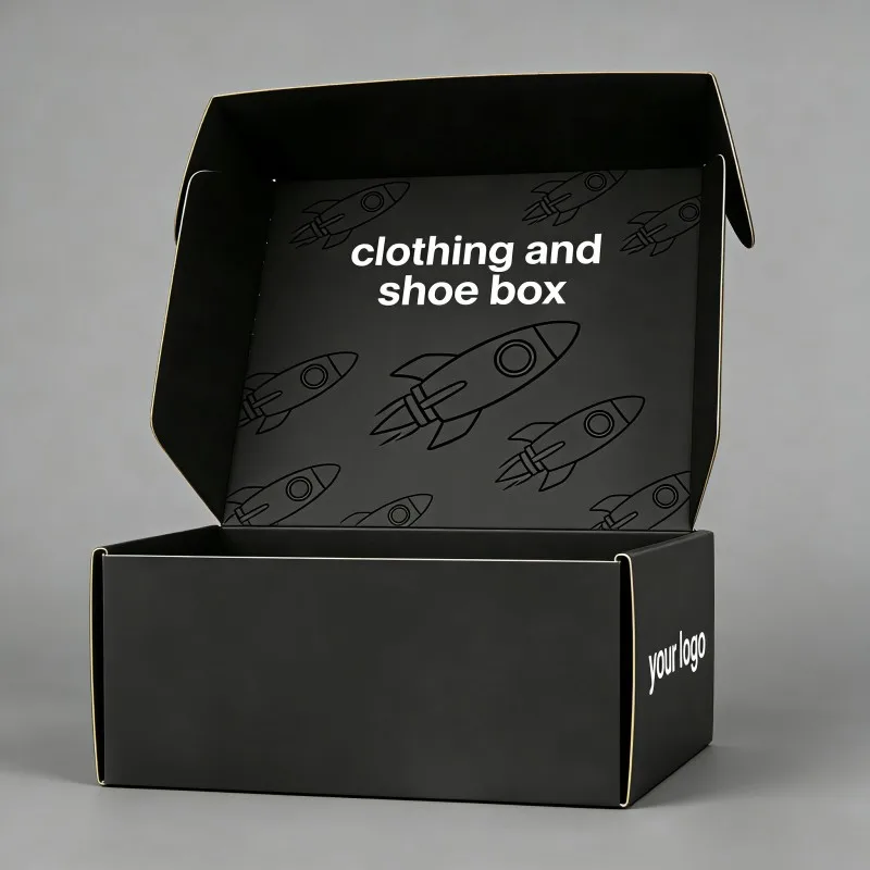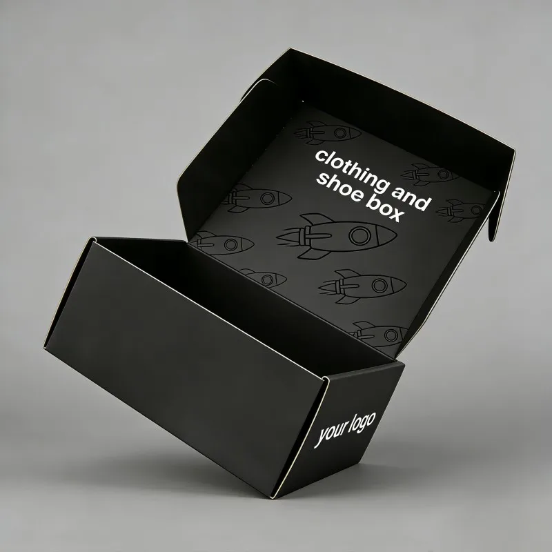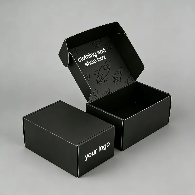 Хит продаж: черный ламинированный картонный коробок для одежды и обуви с УФ-покрытием, индивидуальный перерабатываемый коробок для упаковки нижнего белья, почтовый отправочный коробок