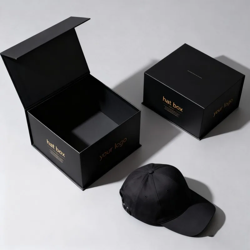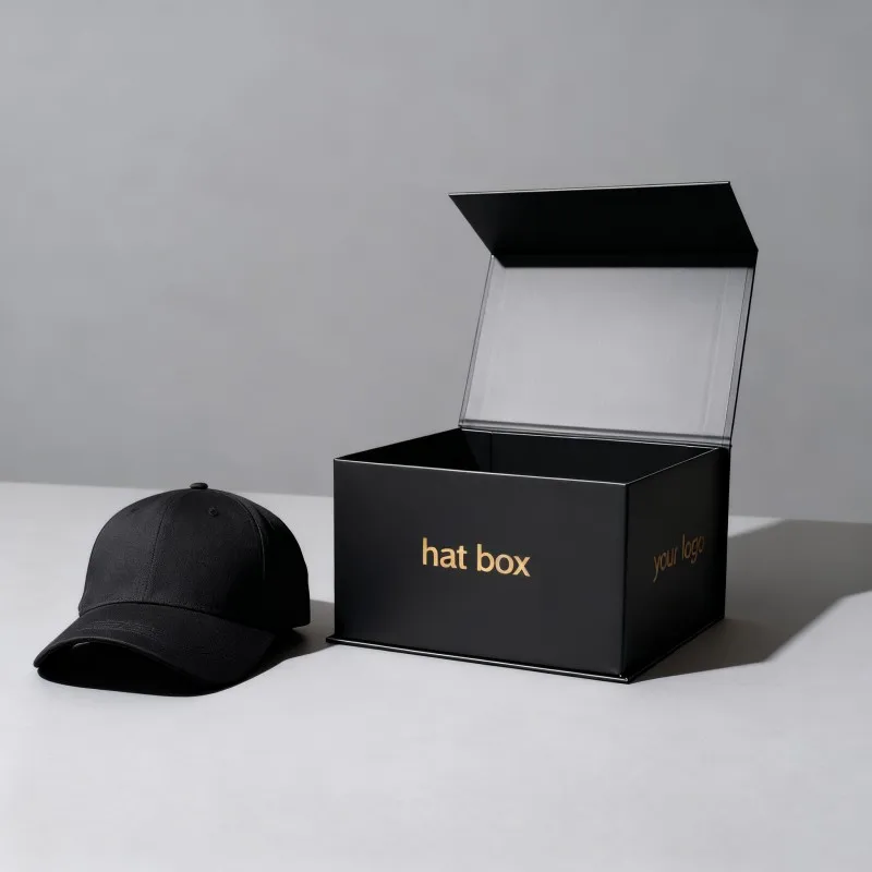 Премиальная упаковка высокого класса с магнитной застёжкой-книжкой из картона для головных уборов и бейсболок; экологичная, перерабатываемая упаковка для одежды
