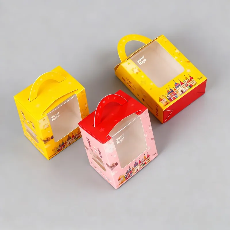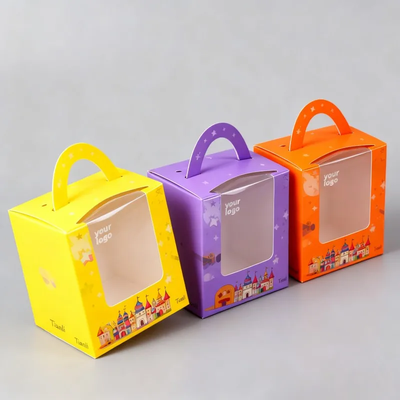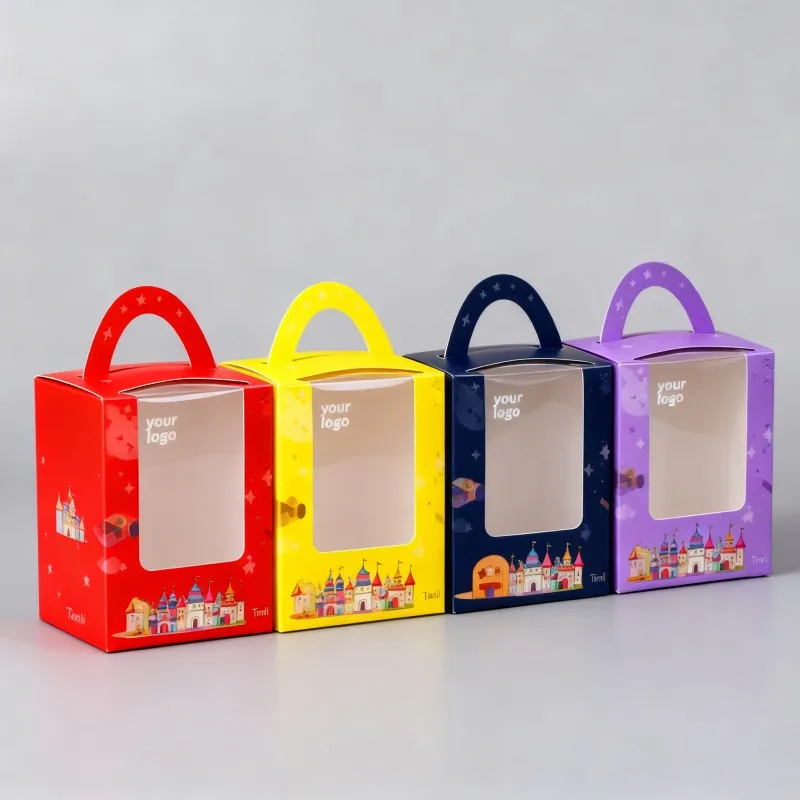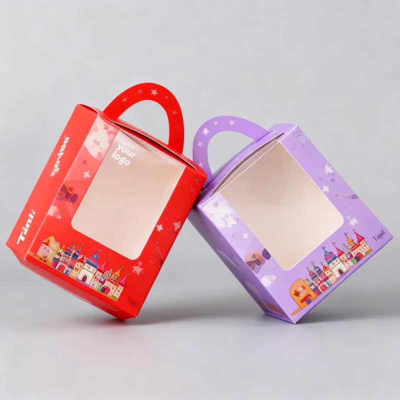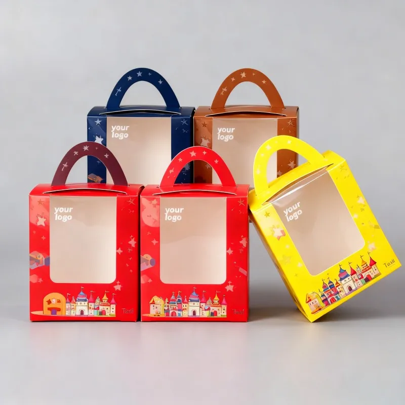Škatuľky na výkladné usporiadanie na vianočné obdobie s okienkom, papierové škatuľky na cukríky s uchom, zložiteľné bielé kartónové škatuľky s uchom s digitálnou tlačou