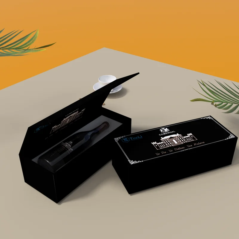 Sipagang Itim na Rigid Magnetic Box Wine Champagne Glasses Bottle Packaging Gift Box Mga Sale Soy Ink Factory Direct Vodka Rigid Box
