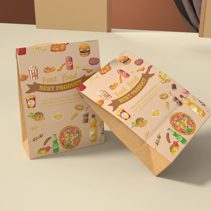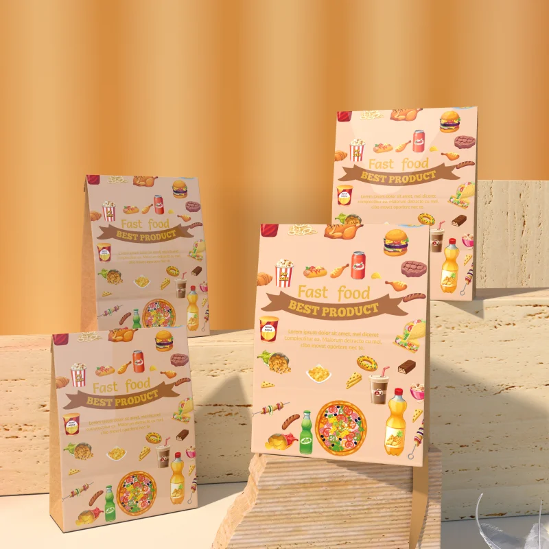 Custom Takeaway Kraft Paper Bag Proof Ng Langis Pagpapakita Ng Food Packaging Bag Bread Hamburgers Fries Fried Chicken Paper Bags