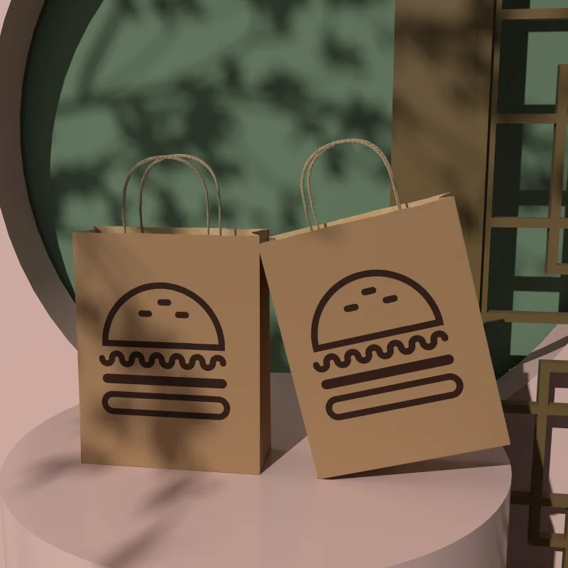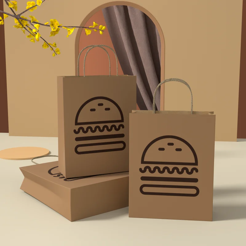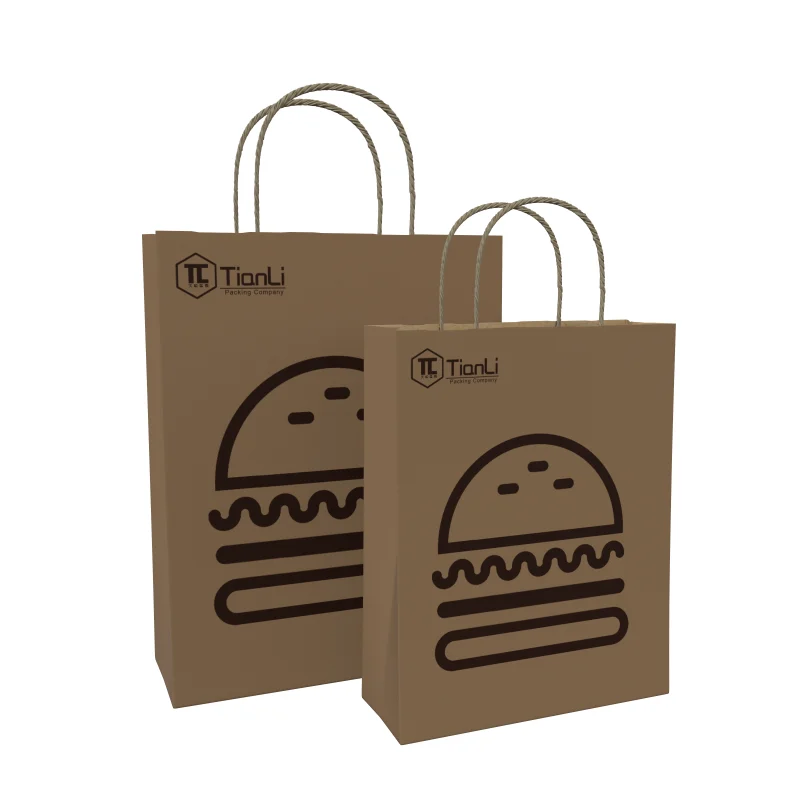 Soy Ink Hard Extra Large Paper Bag with Handle Fast Food Packaging Takeaway Burger Custom Logo Handle Kraft Paper Bag